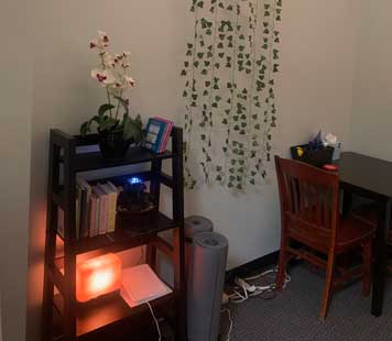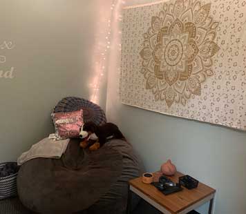 We also have a Zen Den available for students to use. This is a cozy quiet space that students can reserve for 30-minute slots when they they need a private space to relax. The room includes a giant beanbag chair, a weighted blanket, noise-cancelling headphones, aromatherapy, a noise machine, a light box, coloring books, stuffed animals for hugging, and some fun books to read. If you are interested in reserving the room, you can call us at 270.809.6851 or email us at msu.counselingcenter@murraystate.edu. You can also stop by our office in C104 Oakley Applied Science and ask if the room is available. The room is intended to be used by one person at a time, and you will need to sign a release the first time you use it. The space is available for use when our office is open (8-4:30, M-F).