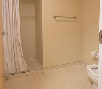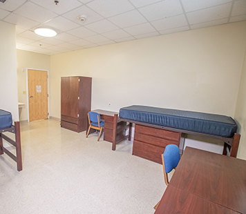 Lee Clark Hall has two different styles of rooms. As a first year student, you will be assigned to a double room with a private bathroom. Returning students can reserve a room in a four person private bedroom suite with a common room and bathroom to share. Below are approximate dimensions of the rooms. and furniture supplied.