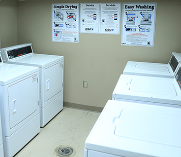 Located on the 3rd, 6th, and 8th floors and contains three washers, three dryers, countertop, and sink.