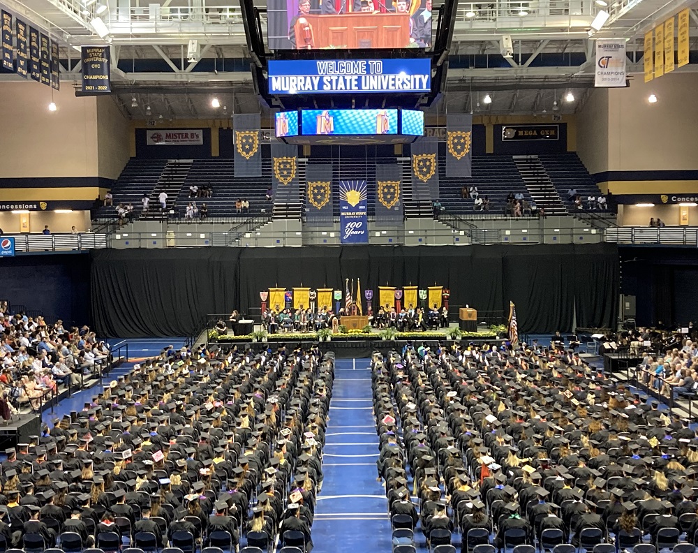As part of its centennial year in 2022, Murray State University hosted commencement ceremonies for spring/summer 2022 graduates as well as fall/winter 2021 graduates on Saturday, May 14 at the CFSB Center.