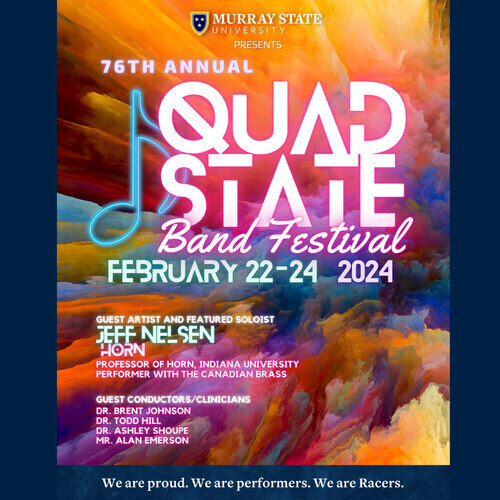 Murray State will host the 76th annual Quad State High School Honor Band Festival from Feb. 22-24. This year's guest artist and featured soloist is Indiana University Professor of Horn Jeff Nelson, who is also a performer with the Canadian Brass. The Quad State High School Concert will be held at 11 a.m. on Feb. 24 in Lovett Auditorium.