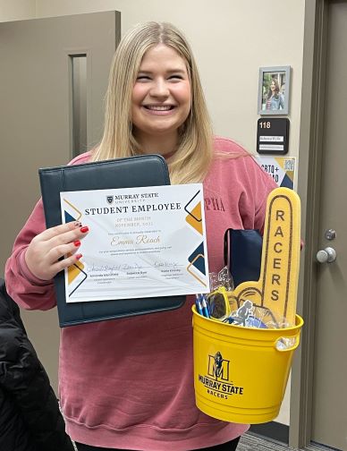 The Student Employee of the Month award was established by the Career Services Office in the Fall 2022 semester. The goal of the Student Employee of the Month Program at Murray State University is to recognize members of the Racer community who regularly display the career-focused learning outcomes essential to Kentucky graduates, as outlined by the Kentucky Council on Postsecondary Education (CPE). These essential skills are consistent with the National Association of Colleges and Education (NACE) career-readiness competencies.