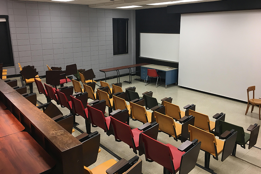 The Art History facility includes two lecture halls with auditorium seating. The principal classroom, equipped with high-resolution digital projectors, serves an average of 25 students or less. The Art History facilities have 3,754 square feet of space.