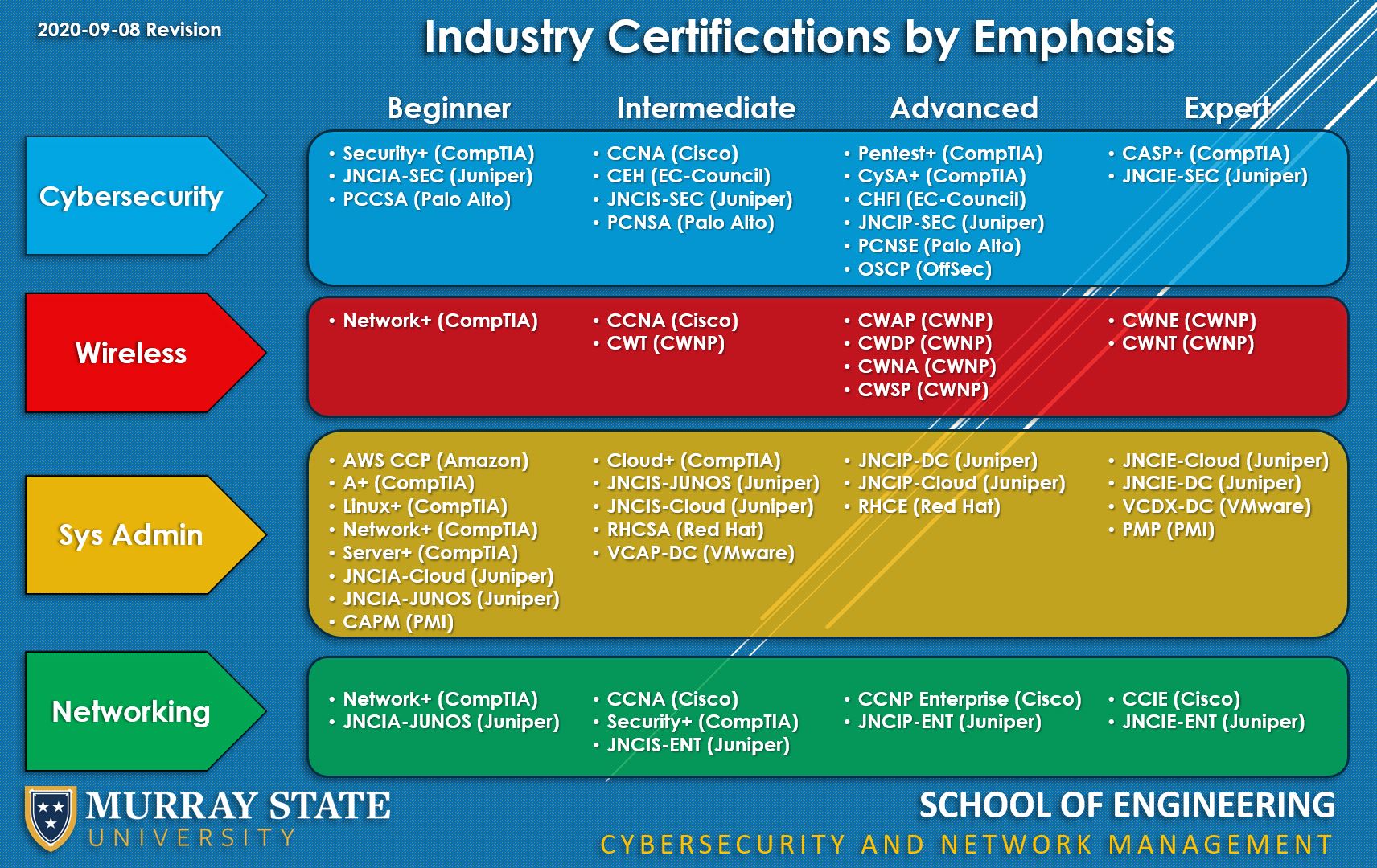 Murray State also offers discounts on some certifications as well as reimbursement for students who meet certain criteria. See the Certification Reimbursement section below for more information. The Recommended Certification Catalog includes more detailed information about the recommended certificates.