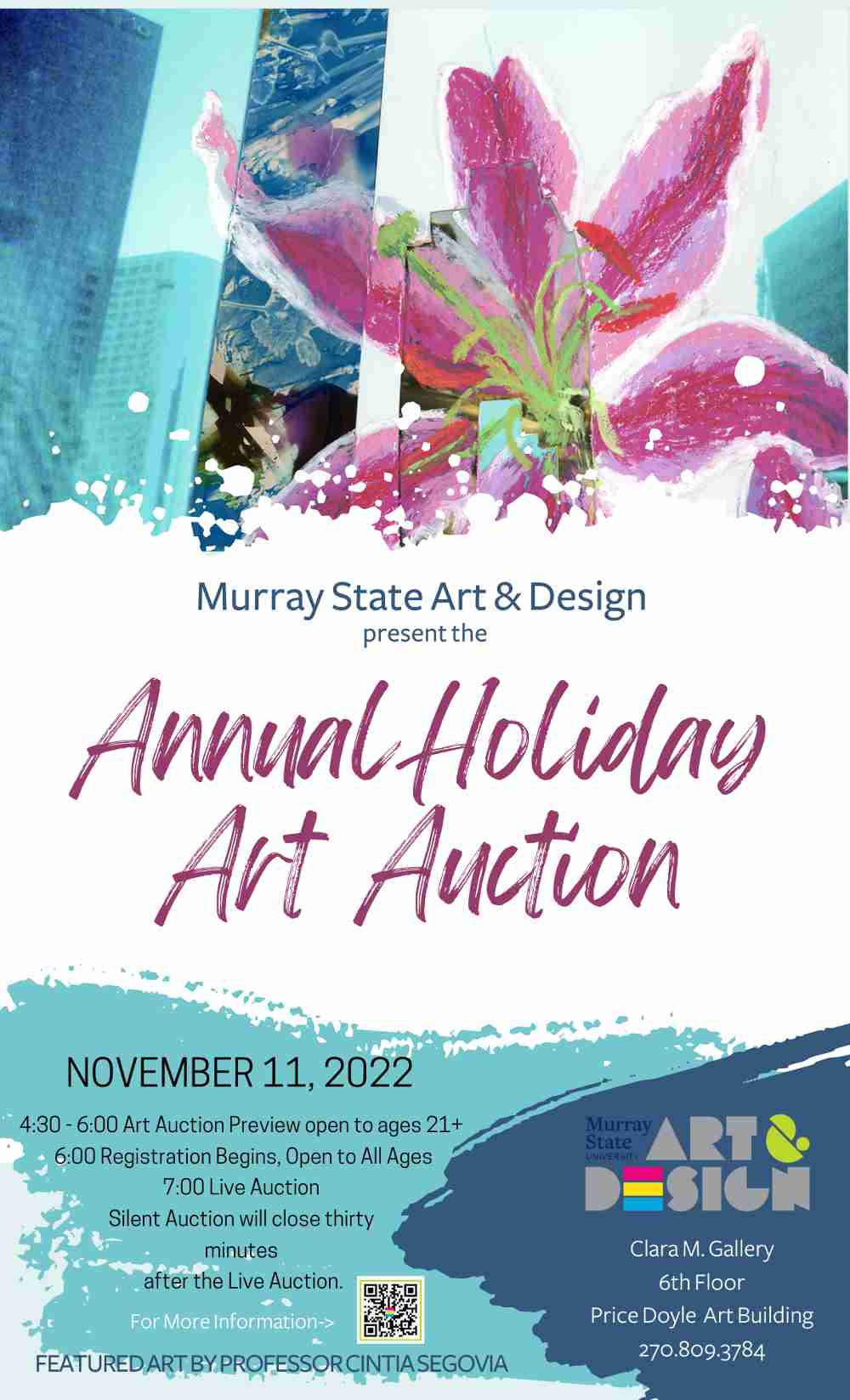 MURRAY, Ky. – The Murray State Department of Art & Design and University Galleries are pleased to host the 2022 Annual Holiday Art Auction on Friday, Nov. 11, beginning at 4:30 p.m. in the Clara M. Eagle Gallery located on the sixth floor of the Price Doyle Fine Arts building on Murray State’s campus.