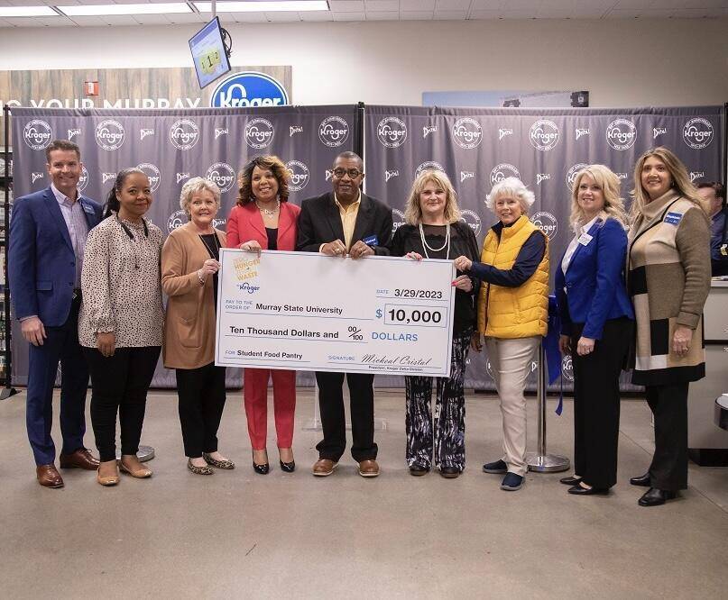 Murray State University’s Racers Helping Racers food pantry recently received a $10,000 donation from Kroger as part of the Murray store’s grand re-opening on March 29.