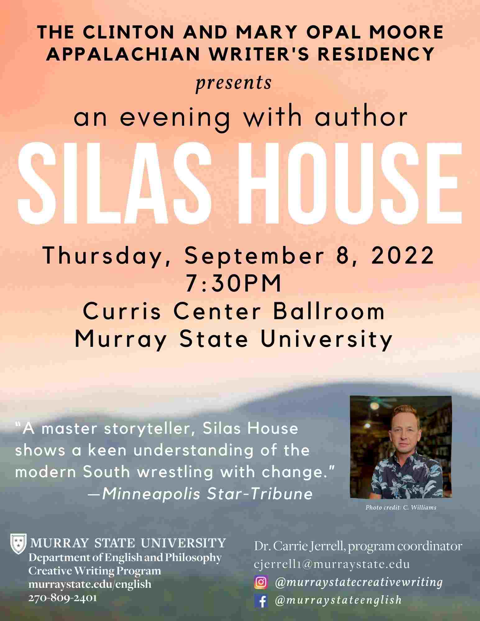 “We are thrilled to be hosting Silas House this fall as the Clinton and Mary Opal Moore Appalachian writer-in-residence,” said Dr. Carrie Jerrell, creative writing program director at Murray State. “Throughout his distinguished career and through numerous mediums, Silas House has celebrated the rich and diverse culture of the Appalachian region. We’re excited for him to share some of that work with us here in western Kentucky, and we’re very grateful to the Moore family for making his visit possible.”