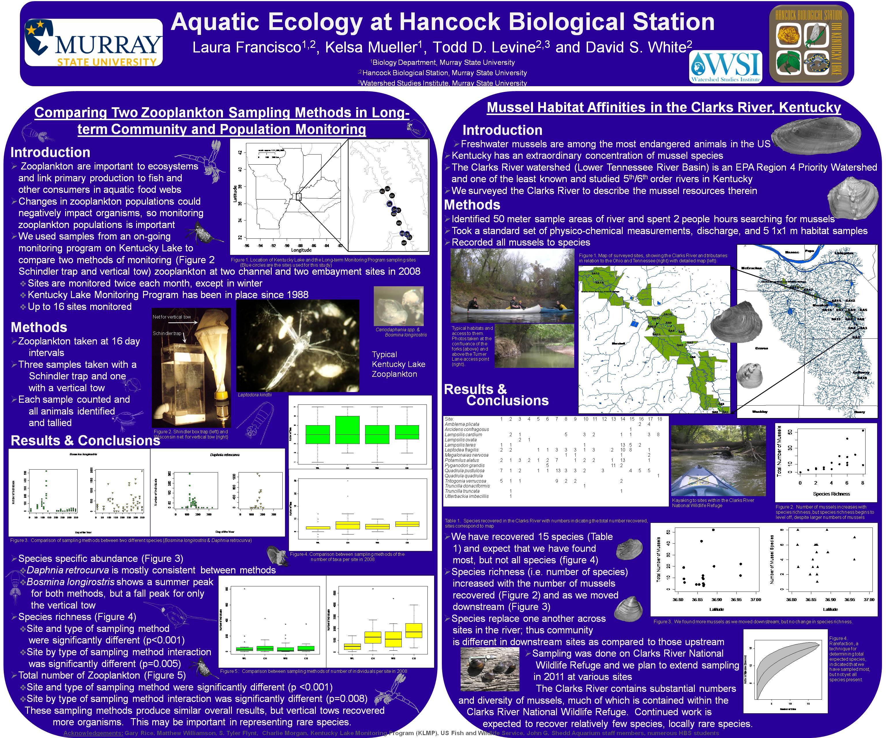 My research interests are centered on patterns in ecology across landscapes and through time. I am especially interested in the interplay of spatial and temporal dynamics and have a strong interest in understanding how obligate linkages between populations affect these dynamics, including parasite, mutualist and predator-prey relationships.Most of my work takes place in aquatic ecosystems and I have a deep interest in how these habitats affect the organisms living in them and, in turn, are affected by their inhabitants . My current work, as a post-doctoral researcher at Hancock Biological Station, addresses these topics using a variety of aquatic animals in Kentucky Lake and the Midwest. For example, I am describing long-term (ca. 20 years) population patterns in space and time of zooplankton in Kentucky Lake.